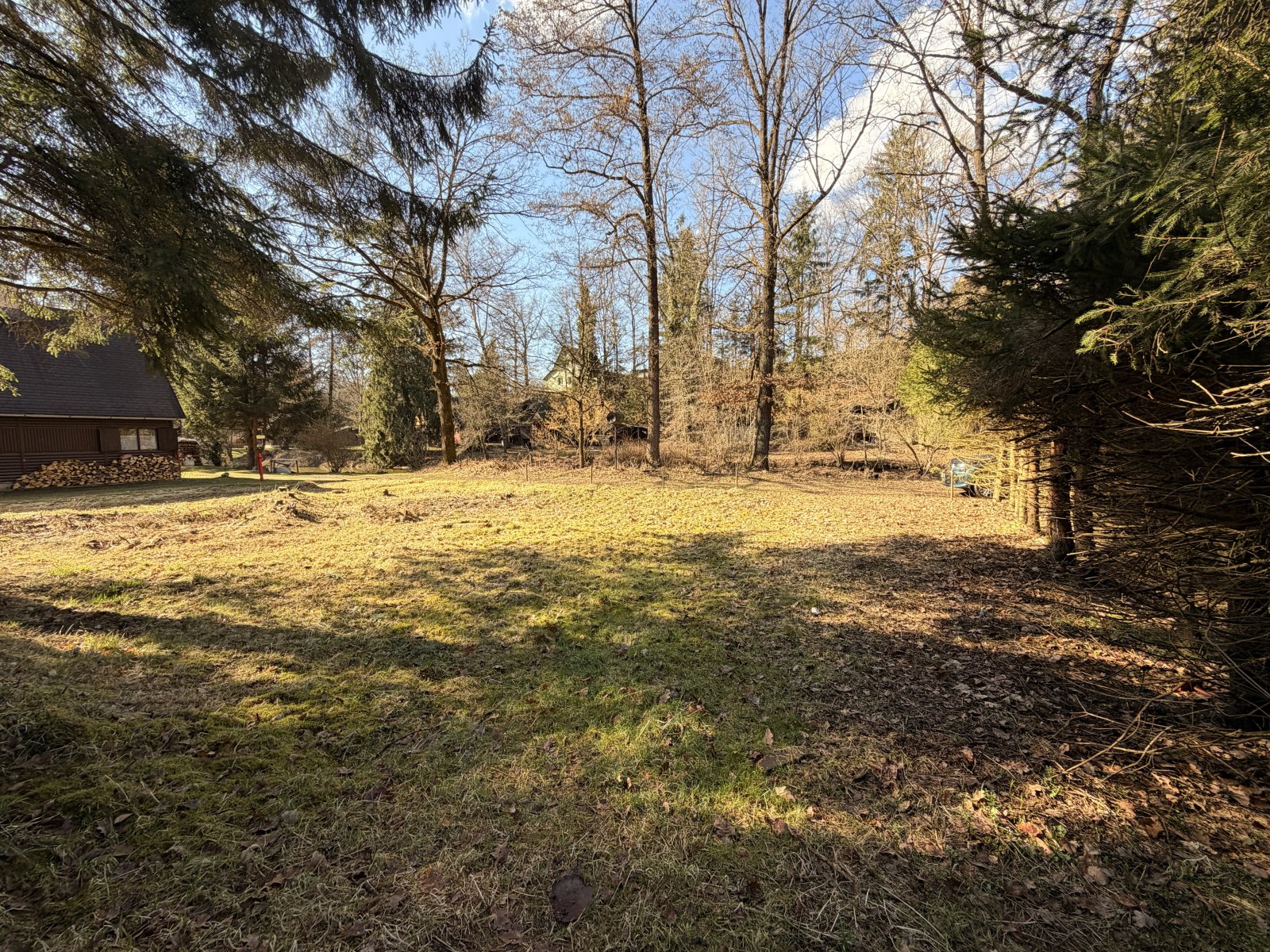 Součástí nabídky je také dřevěná chata (srub) o zastavěné ploše cca 26 m², která je napojena na elektřinu. Stavba může sloužit například jako zázemí při budoucí výstavbě nové chaty, víkendové útočiště, místo k přespání nebo praktický sklad či dřevník.